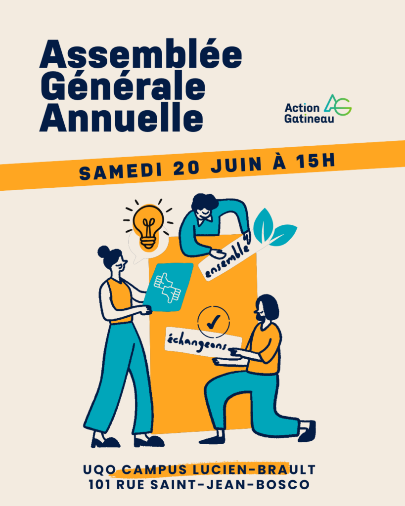 Nous vous invitons cordialement à prendre part à l’Assemblée générale 2026 d’Action Gatineau. Ce sera pour nous l’occasion d’élire de nouvelles personnes au sein du comité de direction.