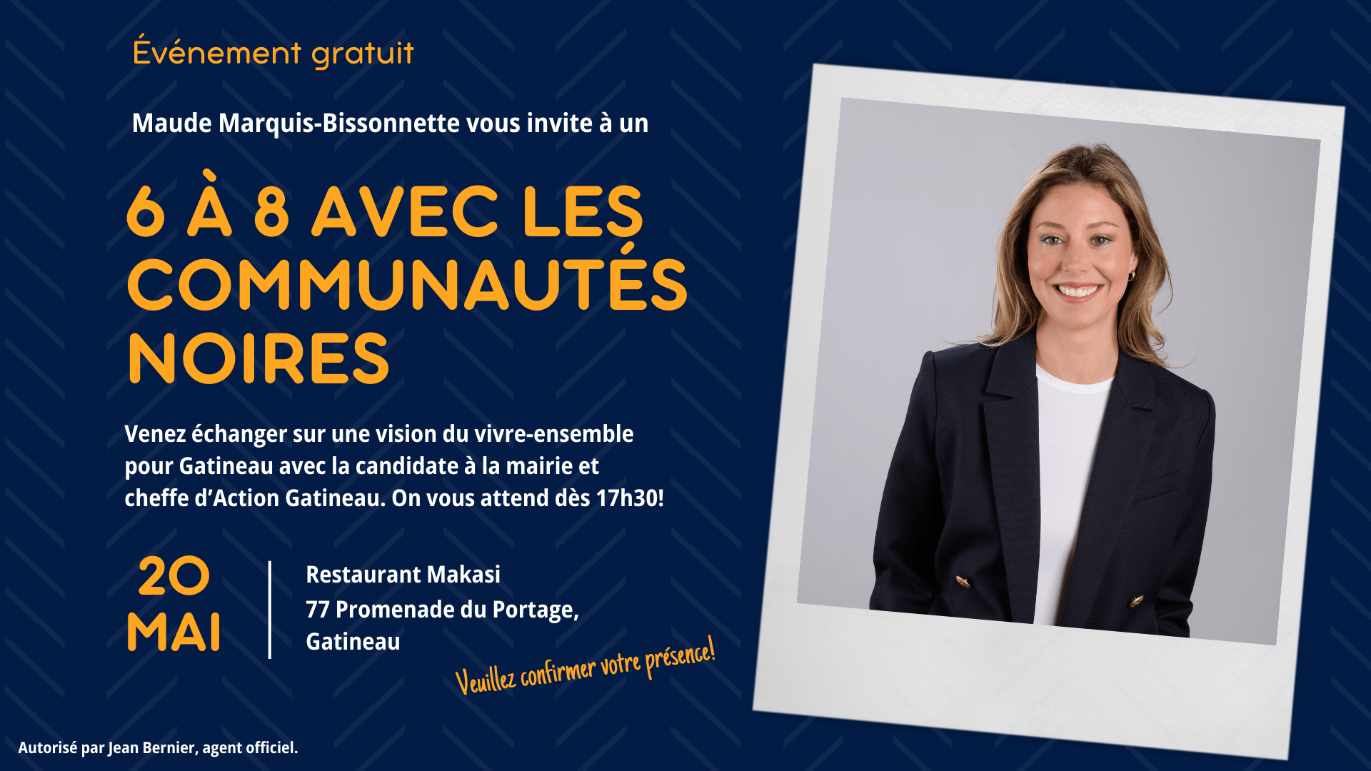 Venez échanger au sujet de votre vision du vivre-ensemble pour la Ville de Gatineau avec la candidate à la mairie et cheffe d’Action Gatineau, Maude Marquis-Bissonnette.